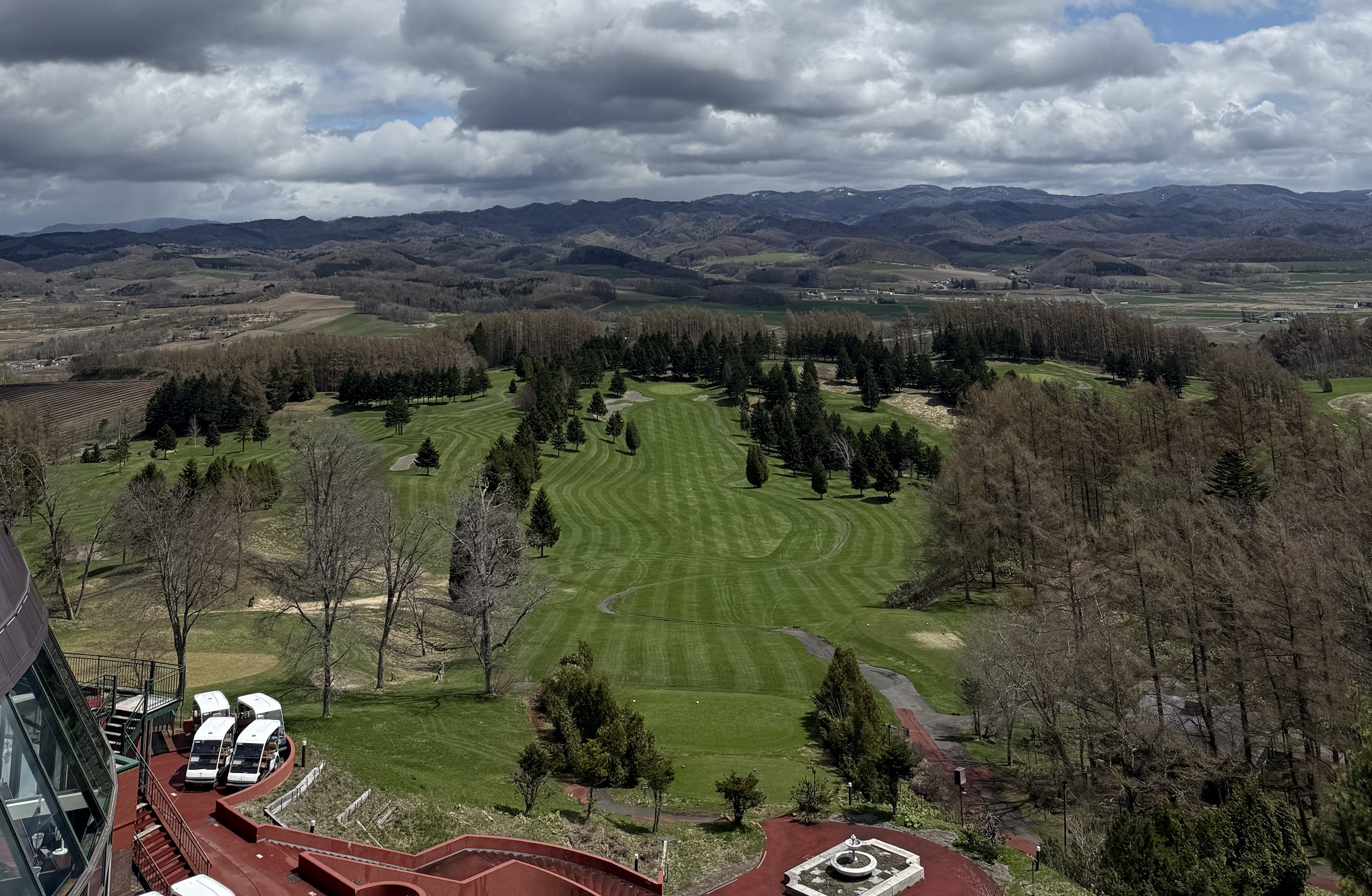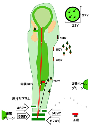 左手練習場に注意しながら、思い切りドライバーを振って下さい。
